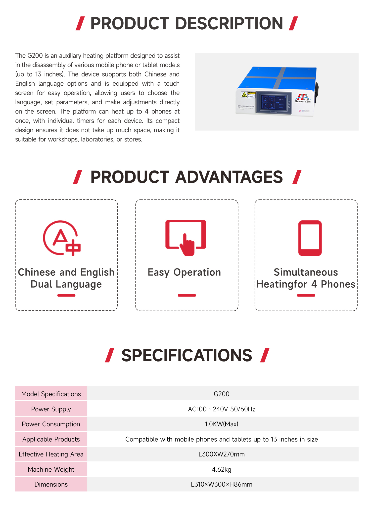 G200 auxiliary removal heating platform
